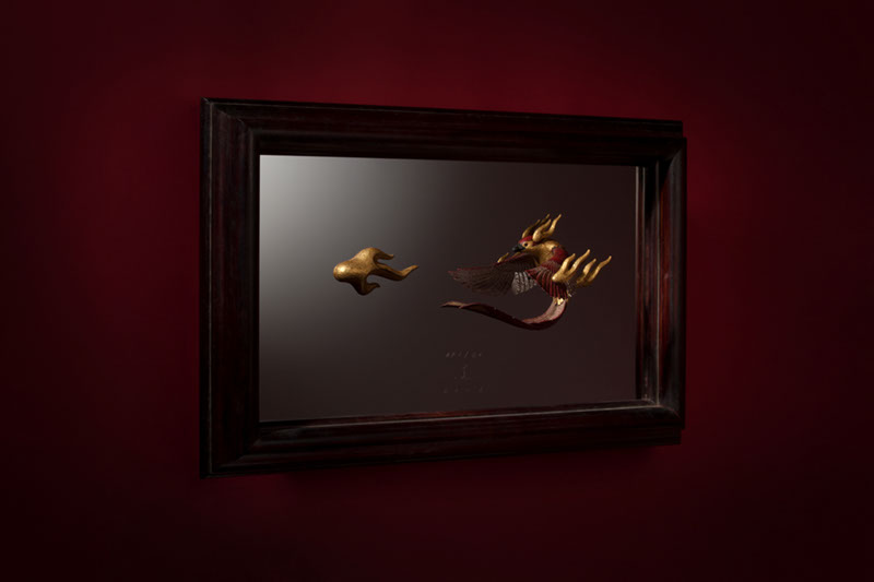 ハロウィン、羽根、浅田弘幸氏のイラスト等をモチーフにした型を元に金箔、銀箔を切り、