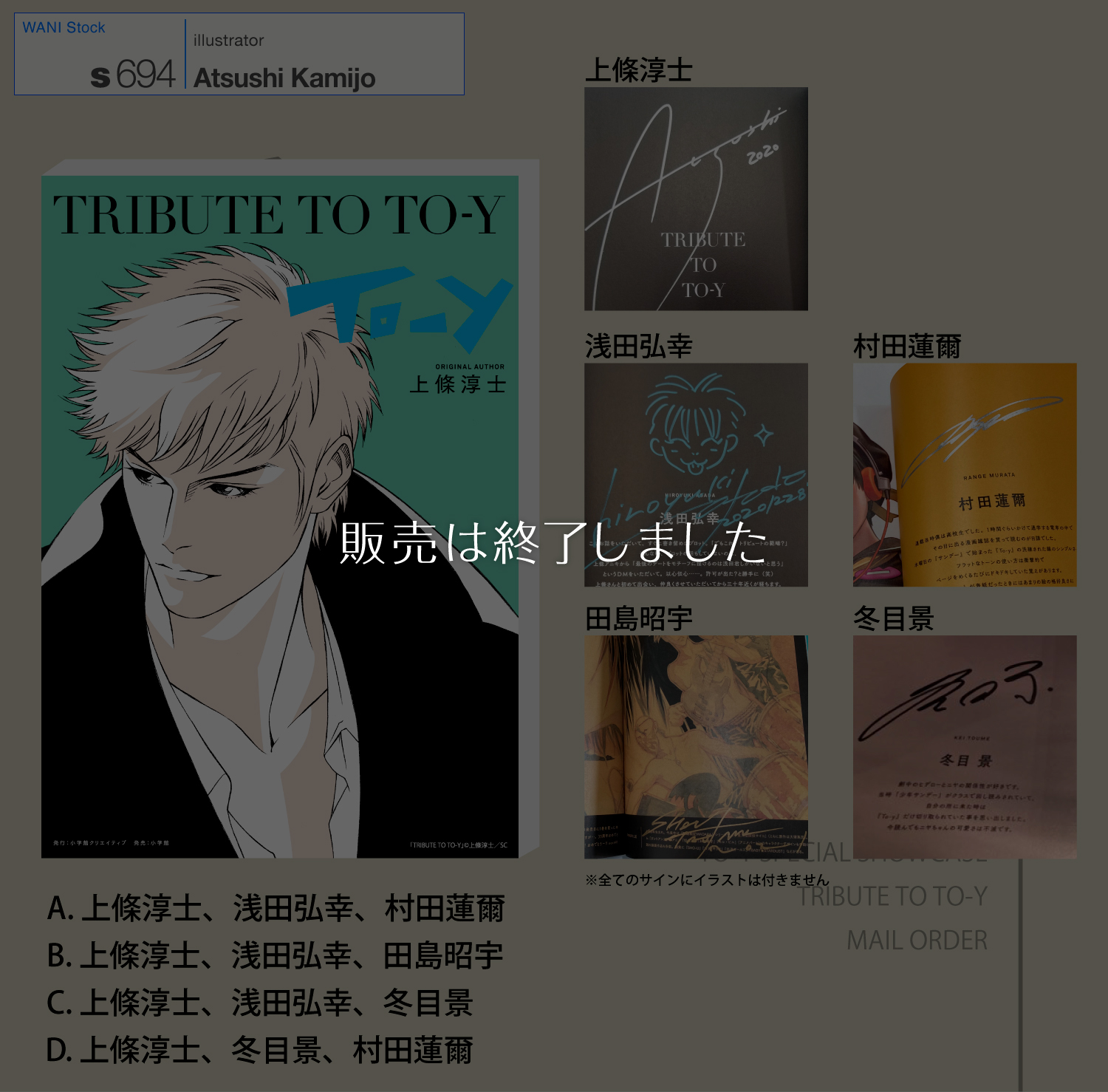 【上條淳士】<TRIBUTE TO TO-Y>(小学館クリエイティブ)トリプルサイン本